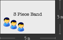 The stage area will vary between duo and 3-piece band.